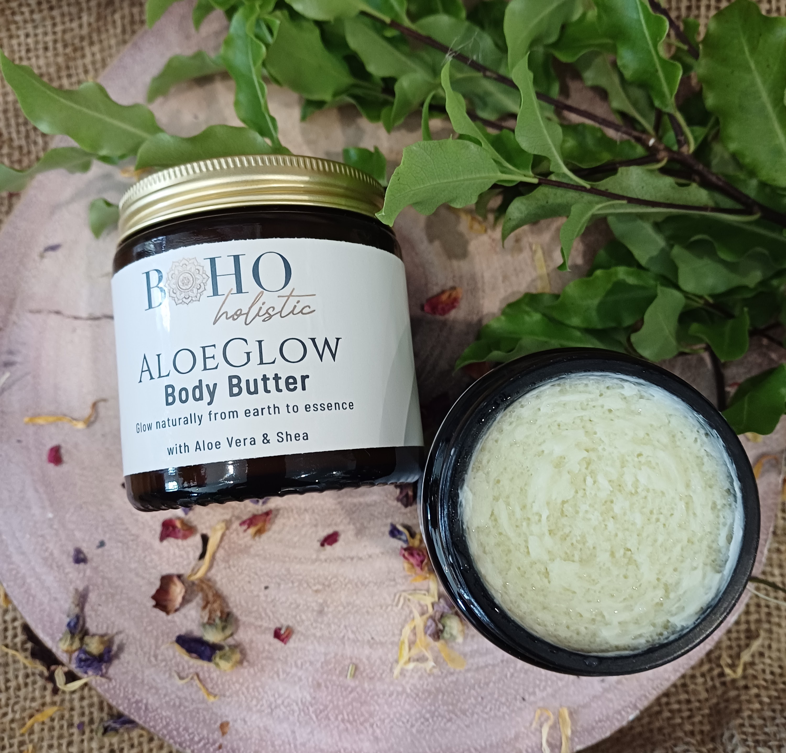 Wrap your skin in nature’s calm with Aloe Glow — a healing body butter crafted to restore softness, replenish moisture, and invite gentle radiance.